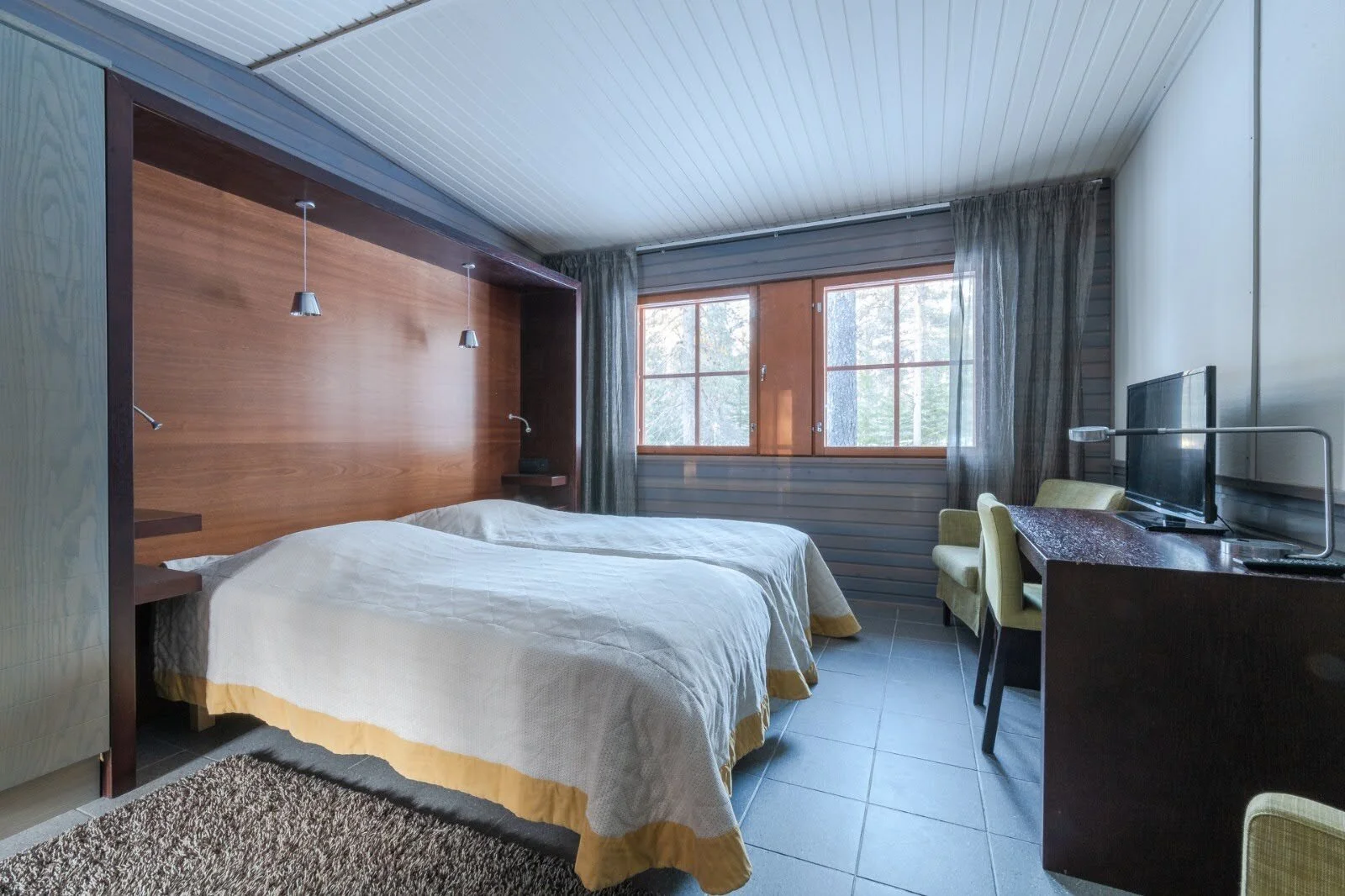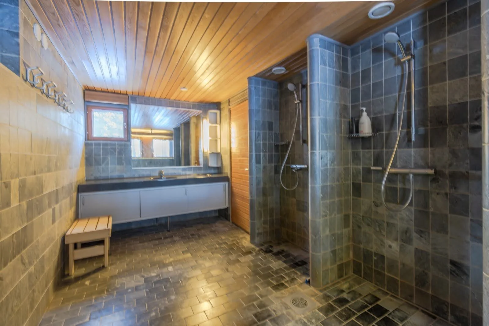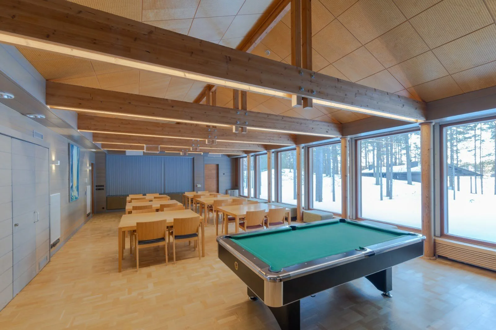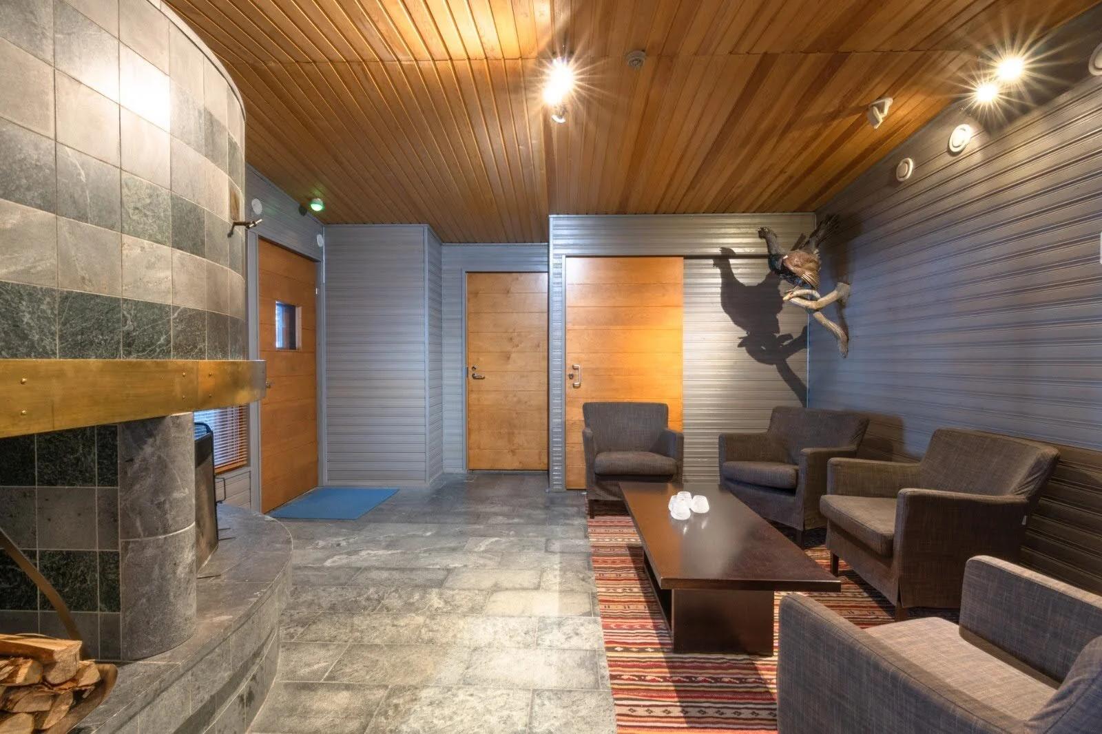 The total capacity is maximum 24 guests split into 12 rooms all with en-suite bathrooms (11 twin rooms + 1 suite with a double bed). With a 780 m2 total size of the buildings, the premises include a dining room for up to 50 people, two cozy lounges with fireplace, big electrical sauna in the main building and a lakeside wood burning sauna with a small kitchen, dining room and fireplace.